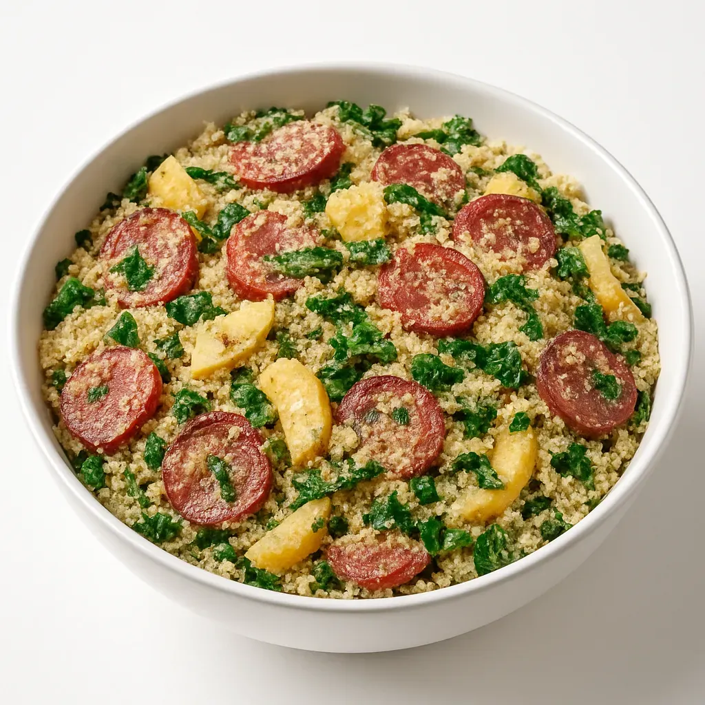 Indulge in the rich and vibrant flavors of Bahia, Brazil, with this restaurant-style Farofa Baiana. This side dish combines the savory notes of sausage and onion with the unexpected sweetness of apple, all enveloped in buttery toasted cassava flour. Perfect for enhancing any meal, this quick and easy recipe captures the essence of traditional Brazilian cuisine with a twist.