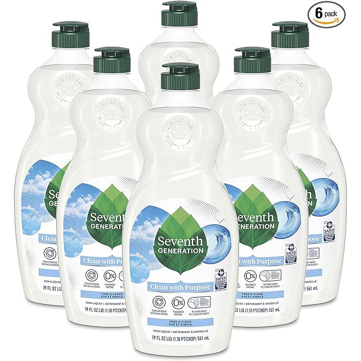 Elevate your dishwashing routine with Seventh Generation Dish Soap Liquid, Fragrance Free, 19 fl oz (Pack of 6) — the smart choice for sparkly clean dishes and ecological integrity. Our dedication to a greener world is matched only by our promise to leave your dishes pristine and your conscience clear. Join countless households in the pursuit of a cleaner home and a brighter future with our trusted, plant-based dish soap.