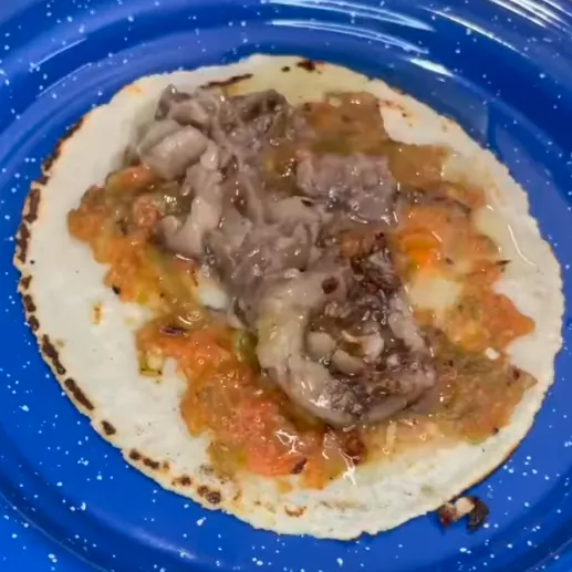 - Use a small spoon to scoop out the warm bone marrow and place it over the salsa on the tortilla.