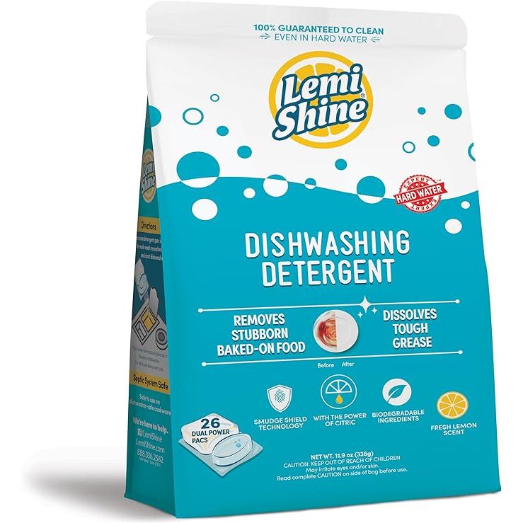 Experience sparkling clean dishes and a safer, greener clean with Lemi Shine Natural Dishwasher Pods. Our innovative formula fuses the natural toughness of citric acid with the convenience of an all-in-one powder and gel pod, effectively tackling stubborn stains and hard water deposits. Crafted without phosphates, artificial dyes, or harsh chemicals, our environmentally-conscious dishwasher pods are a responsible choice for both your family and the planet. Each package delivers 26 effortless cleaning experiences, providing you with a simple, no-mess solution to achieve pristine kitchenware.