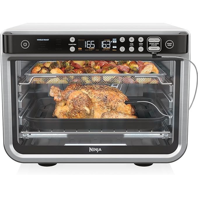 Included with the True Surround Convection Digital Air Fry Oven are essential accessories like sheet pans, wire racks, an Air fry basket, Roast Tray, Crumb Tray, Foodi Smart Thermometer, and a 15 Recipe Guide to help you get started. Elevate your cooking experience and simplify meal preparation with this versatile kitchen appliance that promises convenience and impressive results every time.