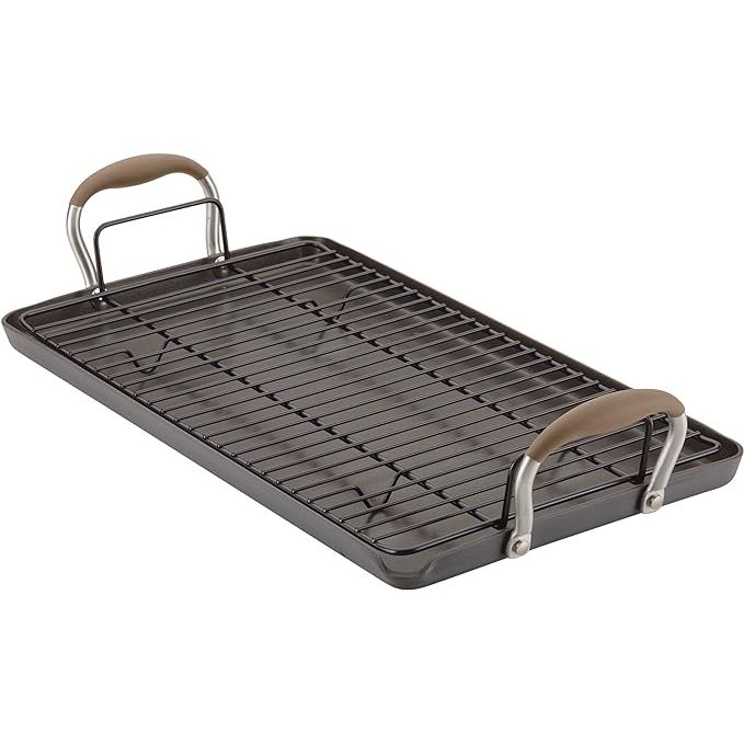 Versatile and convenient, the Anolon Advanced Home Double Burner Griddle/Grill Pan with Roasting Rack is a must-have for any kitchen. From grilling and griddling to roasting meats, this pan can handle a variety of tasks with ease. Upgrade your cooking tools with this high-quality, professional-grade pan today. Description by ChatGPT.