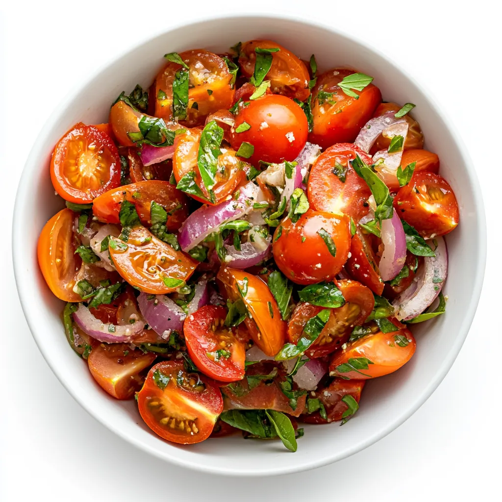 Elevate your summer meal with this vibrant Provencal Tomato Salad, inspired by classic French flavors. The salad pairs beautifully with rich dishes, such as lamb chops, by balancing them with its fresh and tangy taste profile. With each bite, enjoy a burst of flavor from ripe tomatoes, aromatic herbs, and tangy dressing.