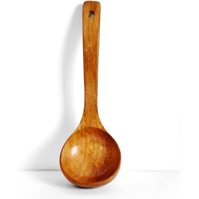 Handmade from high-quality wood, these soup ladles offer a blend of functionality and elegance to elevate your culinary experience. The sleek and classic design ensures a comfortable grip for effortless stirring and serving, making meal preparation a breeze. Whether you're whipping up a savory soup or serving a comforting porridge, a wooden soup ladle is a must-have utensil that combines practicality with aesthetic appeal. Bring a touch of traditional craftsmanship to your kitchen with a beautifully crafted wooden soup ladle that is as beautiful as it is functional. Description by ChatGPT.