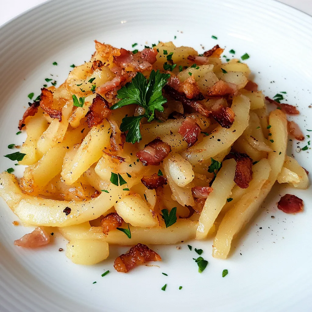 Schupfnudeln: Potato noodles, typically pan-fried with onions and bacon