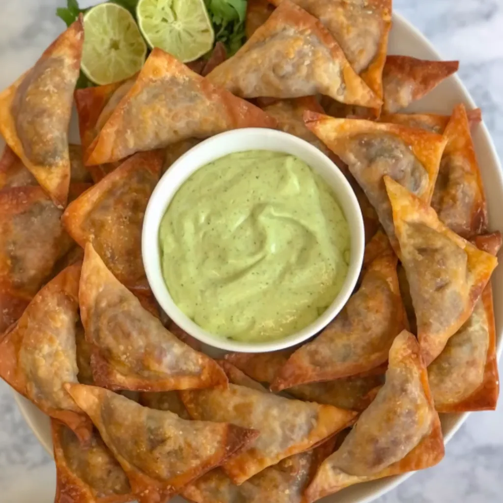 - Serve the crispy wontons with a side of Cilantro Lime Crema for dipping. Enjoy!