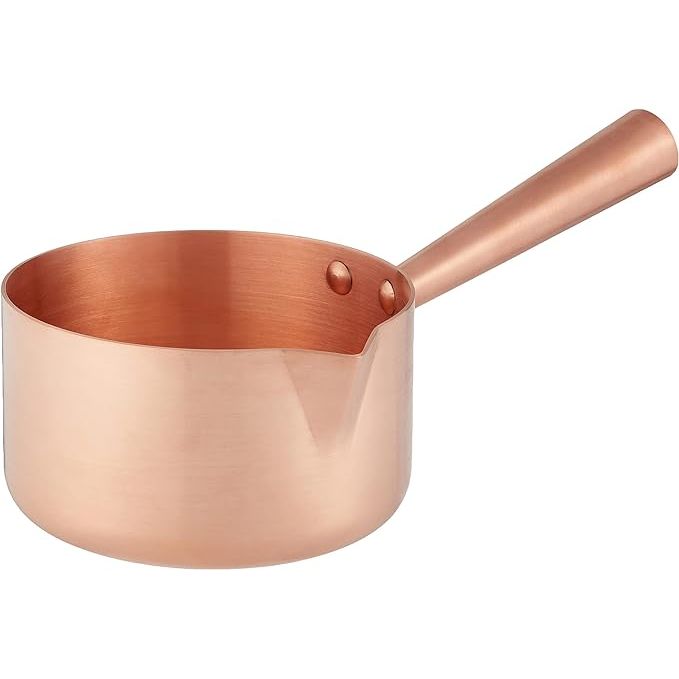 The Mauviel M'Passion Copper Sugar & Caramel Sauce Pan is a top-of-the-line culinary tool crafted in France by the esteemed Mauviel brand. Specifically engineered for creating sugar-based treats like caramel and toffee, as well as savory sauces and syrups, this 1.9-quart pan is ideal for small to medium-sized batches. Its 100% pure copper construction ensures impeccable heat distribution and control, essential for accurately monitoring sugar mixtures while cooking.