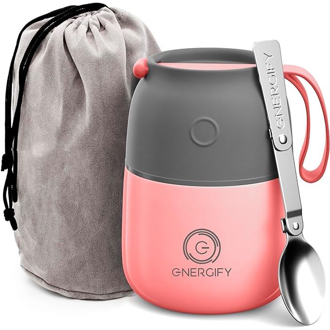 Insulated Food Jar - 12oz with Folding Spoon and Cup - Keeps Drinks Hot or Cold - Lunch Container in Antique Pink