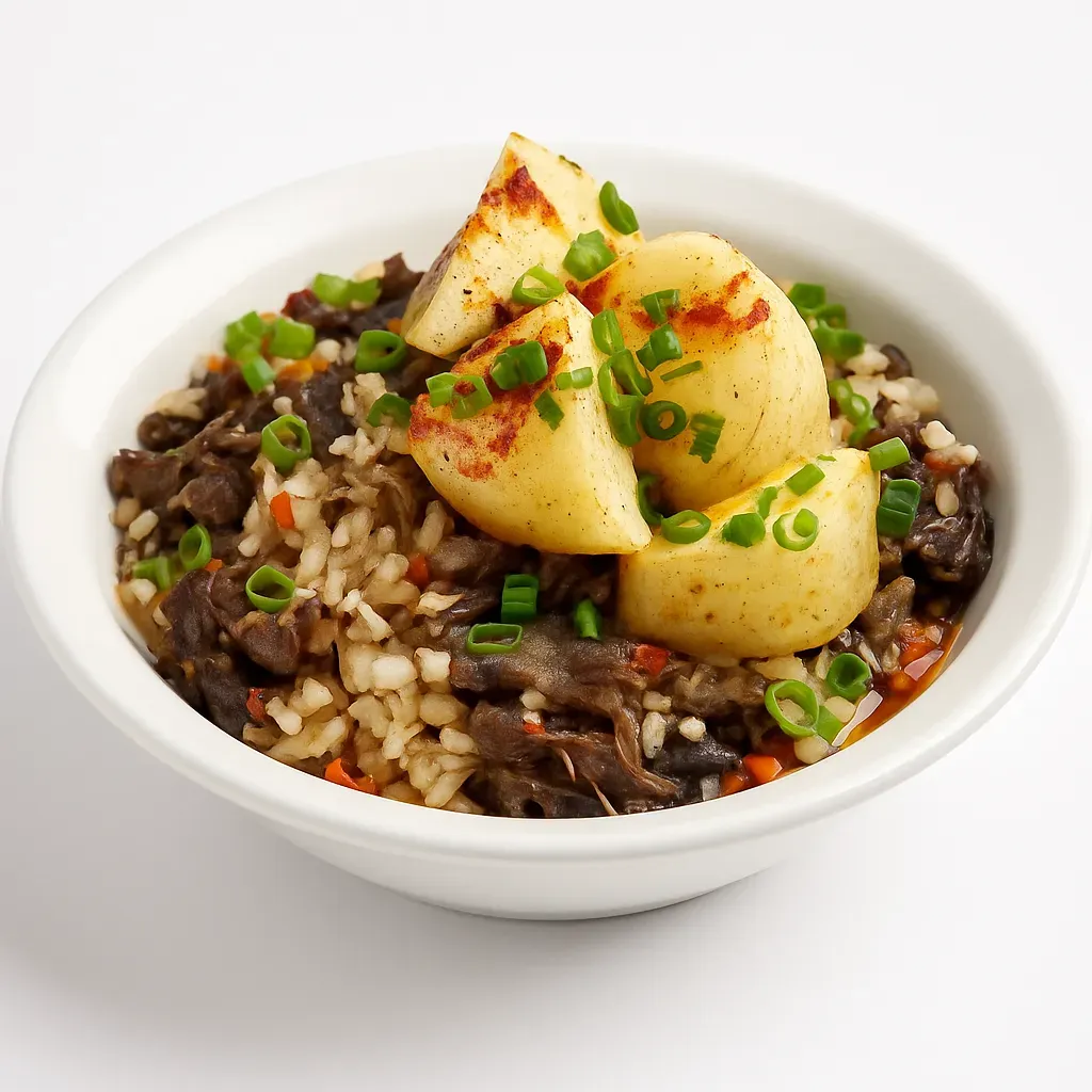 Charquisillo is a traditional dish from Argentina's Mendoza region, known for its comforting fusion of rehydrated charqui (dried meat), rice, and vegetables, finished with a hint of spices. With influences from local and abundant produce, this version incorporates bell peppers and olive oil, creating a flavorful meal that is as culturally significant as it is delicious.