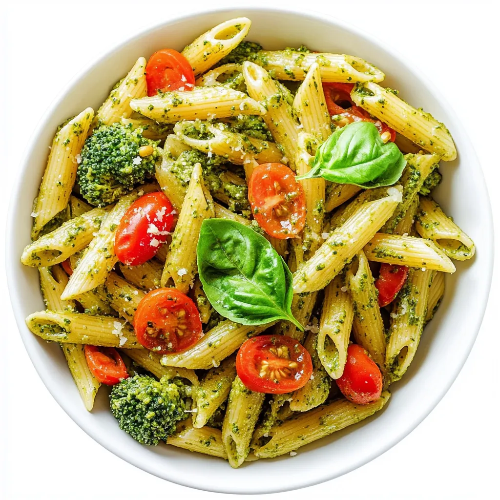 Pesto Pasta Primavera – Penne with basil pesto and vegetables