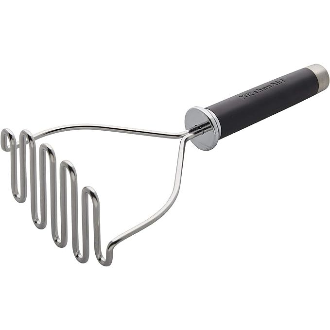 Crafted with durable stainless steel wires, this masher is built to last, resistant to rust and corrosion for long-lasting use. Its sleek black color adds a modern touch to any kitchen decor, while its compact design allows for easy storage when not in use. Whether you're preparing mashed potatoes or other recipes, the KitchenAid Gourmet Stainless Steel Wire Masher is an essential tool for any home cook looking for reliability and efficiency. Reach for this high-quality masher for all your mashing needs. Description by ChatGPT.