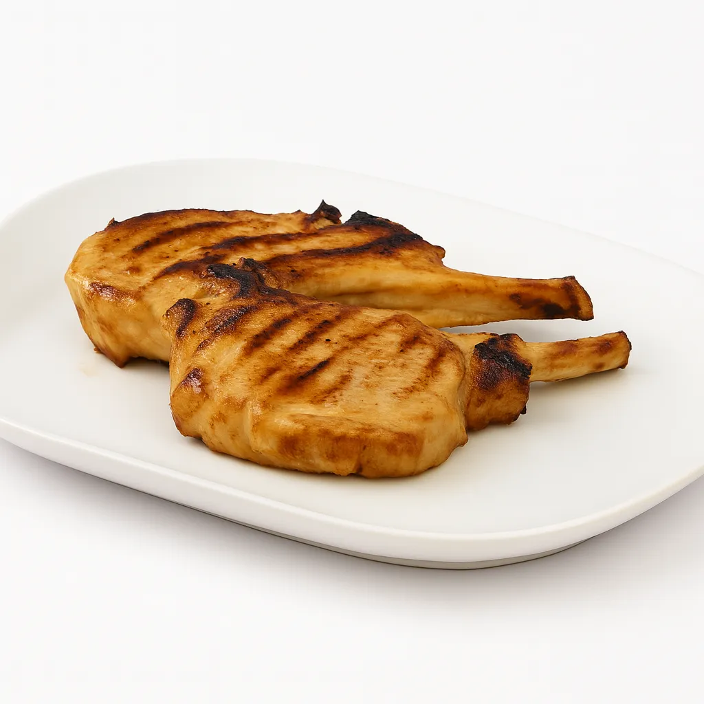 - When checking the temperature of the meat, insert the thermometer into the thickest part of the pork chop without hitting bone.