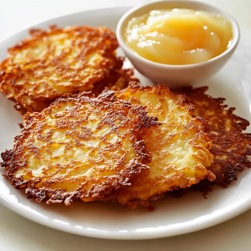 8. Serve your German Potato Pancakes hot with a side of apple sauce (apfelmus).
