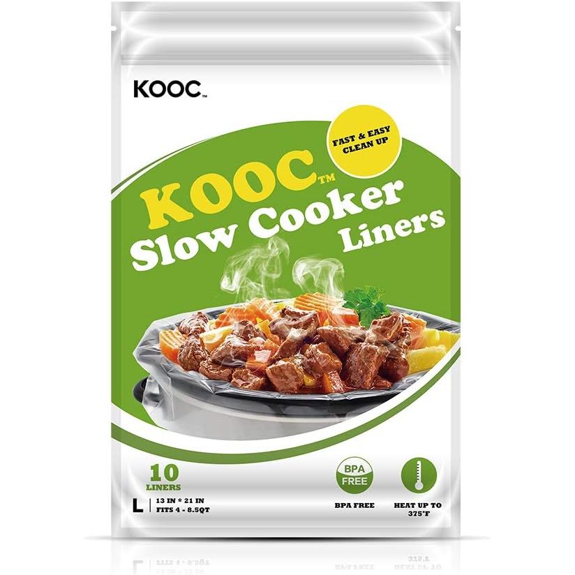 Discover the KOOC Slow Cooker Liners, your go-to solution for stress-free cooking. This pack includes 10 large-sized liners, designed to fit 4 to 8.5-quart slow cookers, making meal prep a breeze. These liners are heat resistant up to 375℉, ensuring safety in the kitchen with their non-ignitable and BPA-free material that keeps your food tasting delicious and nutritious.