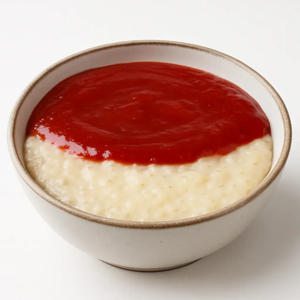 - The sauce should be poured warm for contrast against the chilled tapioca.