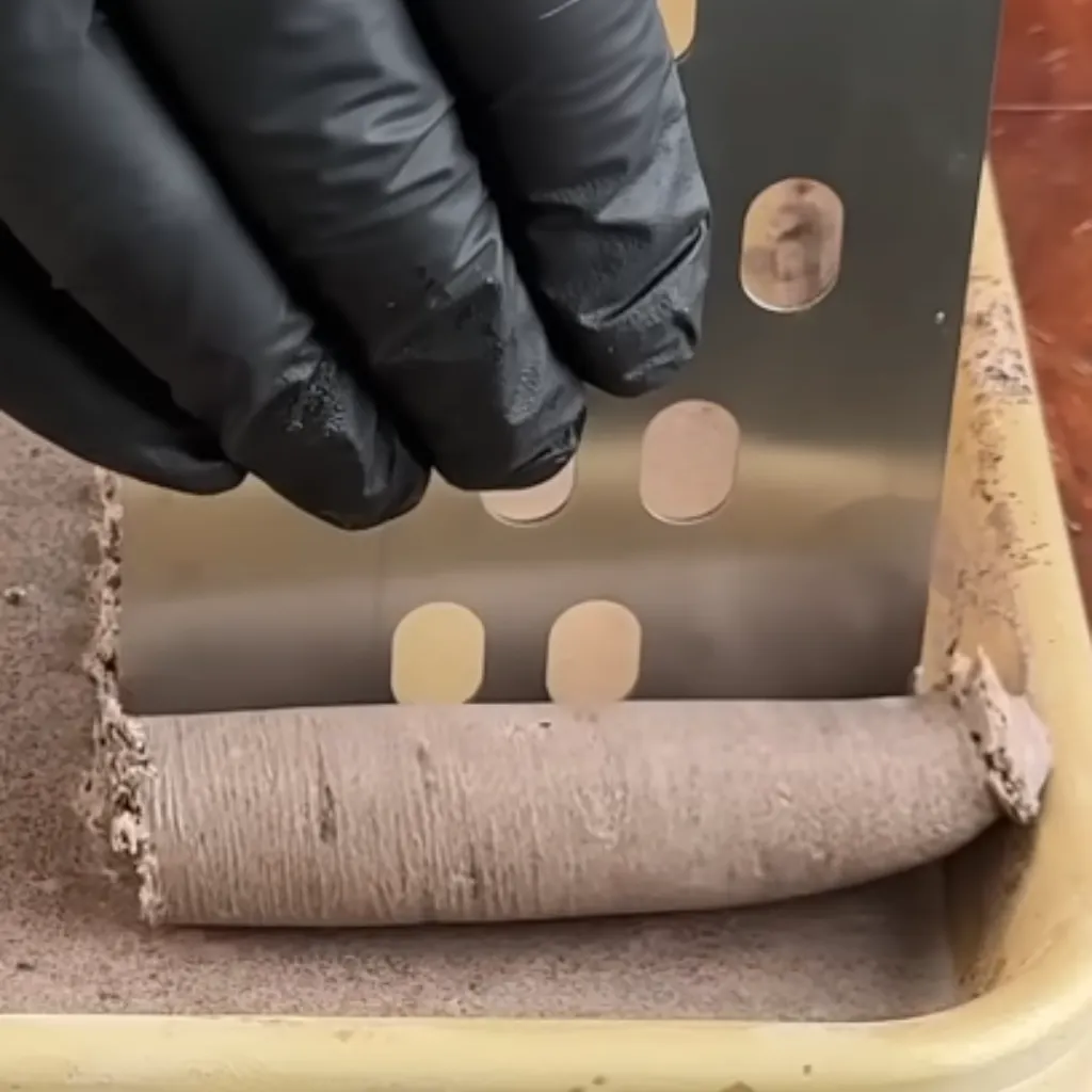 With a metal spatula, firmly scrape the frozen mixture from one edge to form neat rolls.