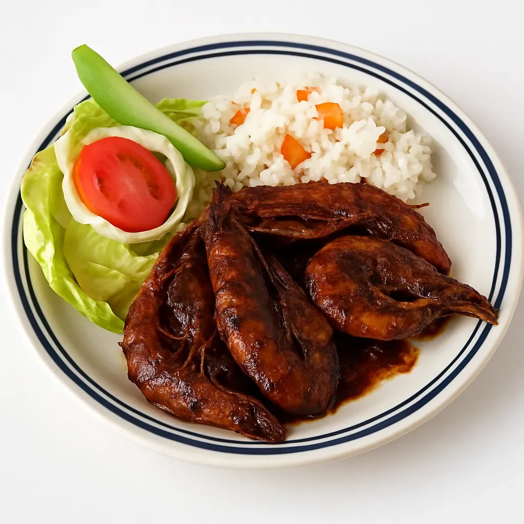 - Pour the adobo sauce over the shrimp.