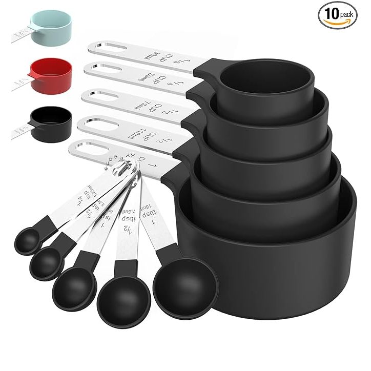 Each cup and spoon is labeled with the measurement size for quick and easy use, and the black color adds a stylish touch to your kitchen gadgets. These measuring cups and spoons are not only fashionable but also easy to clean and maintain. Whether you're a beginner or a seasoned chef, the TILUCK Measuring Cups & Spoons Set is a must-have for accurate and precise measurements in your recipes.