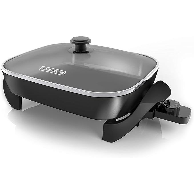 Elevate your culinary experience with the BLACK+DECKER Electric Skillet, an essential addition to any modern kitchen. Designed to simplify meal prep, this electric skillet boasts a user-friendly variable temperature control, ensuring your dishes are cooked to perfection with exacting precision. Effortless cleanups are guaranteed, thanks to its nonstick surface and the convenience of being entirely dishwasher-safe—say goodbye to the hassle and hello to more time savoring your creations.