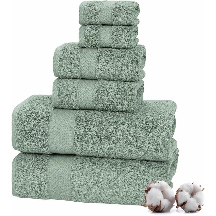 Wrap yourself in the opulence of TEXTILOM's Luxury 6-Piece Turkish Cotton Bath Towel Set, the perfect infusion of everyday indulgence and design for your bathroom. Elevate your personal care routine with this exquisite set, composed of two sumptuously soft bath towels, two plush hand towels, and two gentle washcloths, all in a tranquil, rejuvenating green hue. Crafted from the finest 100% Turkish cotton, renowned for its superior softness, extraordinary durability, and exceptional absorbency, these towels offer an unparalleled pampering experience.