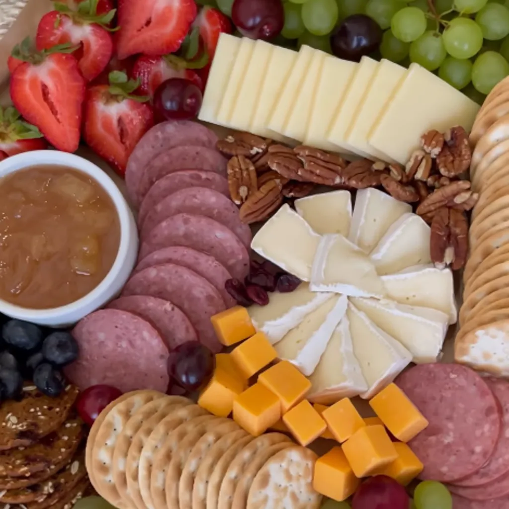 Create an exquisite charcuterie board that will be the centerpiece of any gathering. This flavorful assortment brings together a delightful mix of fruits, cheeses, meats, and snacks, allowing for a perfect balance of sweet, savory, and crunchy. Not only does it taste incredible, but this board also offers a visually appealing arrangement that will impress your guests.