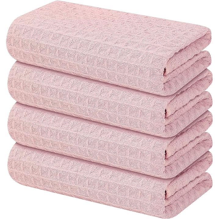 The innovative waffle weave design not only enhances absorption but also promotes quick drying, preventing the buildup of bacteria and unwanted odors. Available in a vibrant solid pink color, these towels add a stylish touch to your kitchen decor while offering practical functionality. Machine washable and reusable, these towels are a sustainable option for environmentally conscious households.