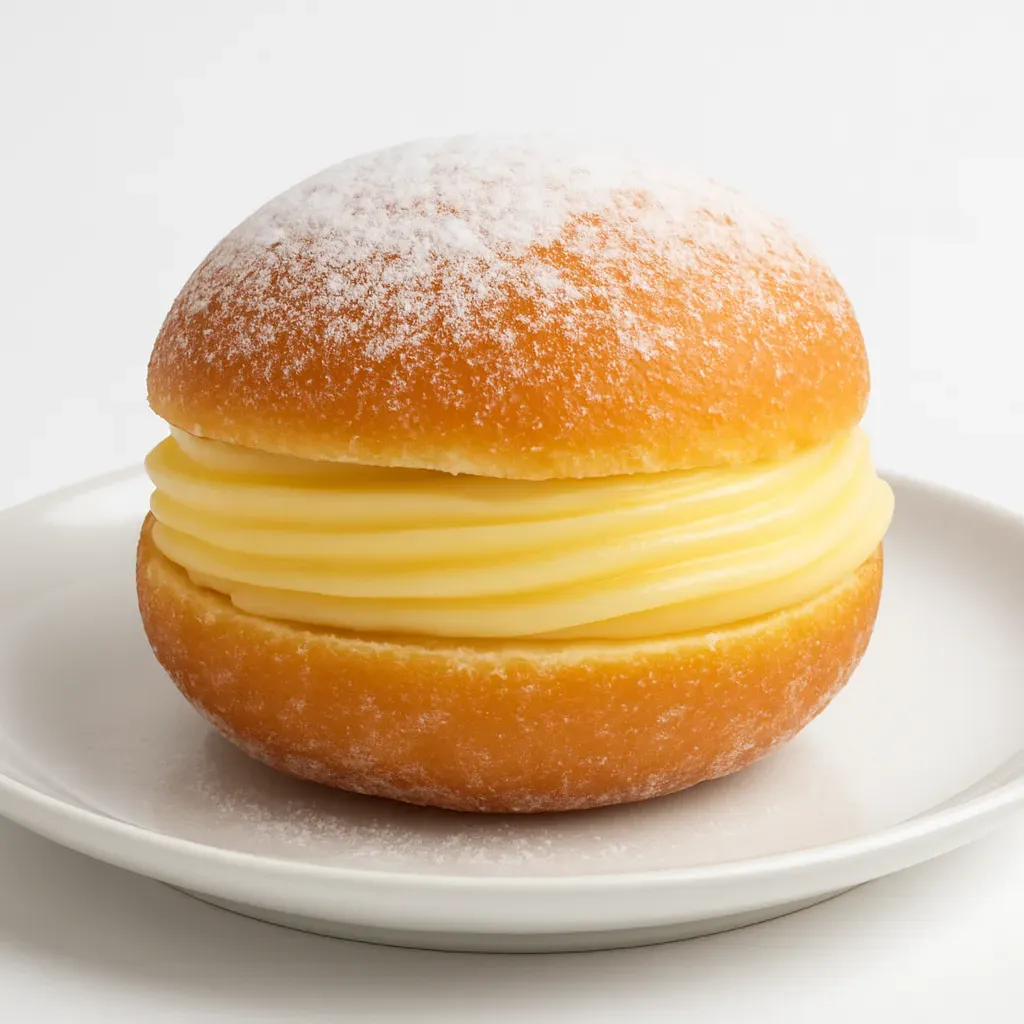 - Fill a piping bag with the custard and fill each sonhos with the creamy mixture.