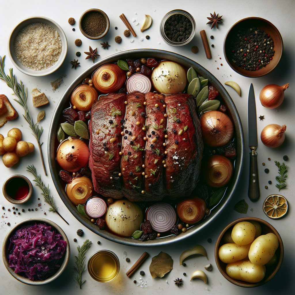 Welcome to our culinary journey! Today, I'm delighted to share with you a recipe that's been on my list for ages—a traditional Rhineland Sauerbraten. This German pot roast is marinated in a tangy mixture before cooking, resulting in a dish that is bursting with deep, rich flavors. So roll up your sleeves and let's create a meal that's perfect for a hearty dinner with family and friends.