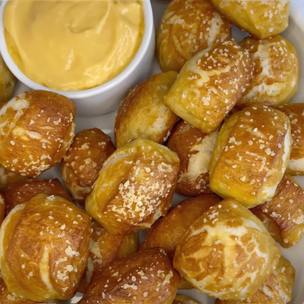 - Serve the warm pretzel bites with the cheese sauce on the side and enjoy!