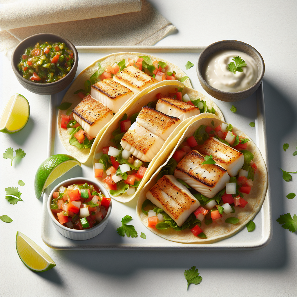 9. Assemble the tacos: Lay a warm tortilla flat, place a portion of grilled halibut in the center, top with shredded cabbage and a generous spoonful of homemade pico de gallo.
