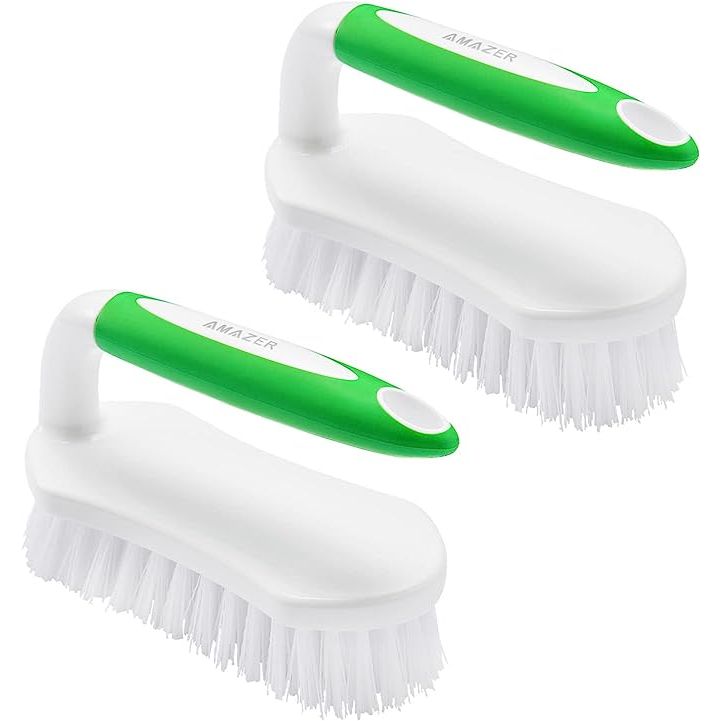 Amazer Heavy-Duty Scrub Brush with Stiff Bristles and Comfort Grip Handle - Dual Pack, Green