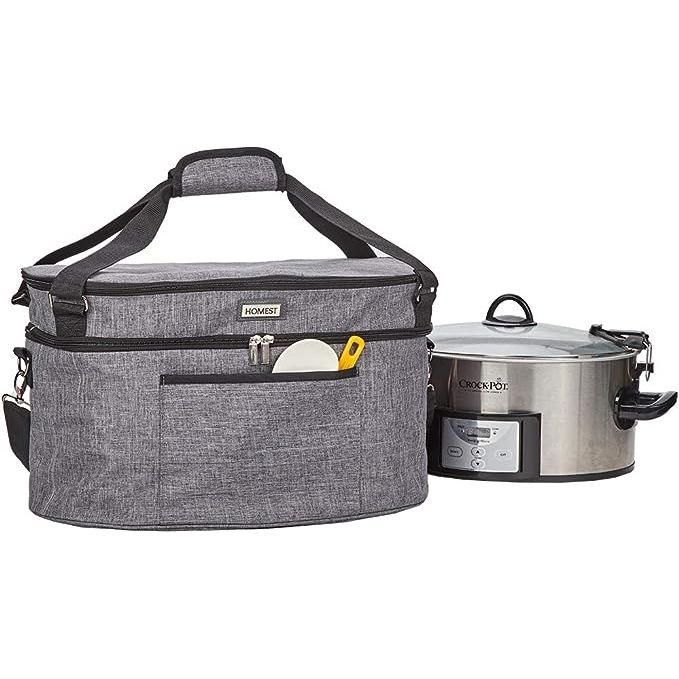 The HOMEST Slow Cooker Bag is the perfect accessory for anyone looking to transport or store their Crock-Pot 6-8 quart slow cooker. Its insulated design keeps food at the ideal temperature while on the go, and the top zip compartment and accessory pocket provide convenient storage for utensils and other essentials. Crafted with a durable and easy-to-clean lining, this bag ensures your slow cooker stays protected from damage, whether you're headed to a potluck or simply storing it at home.