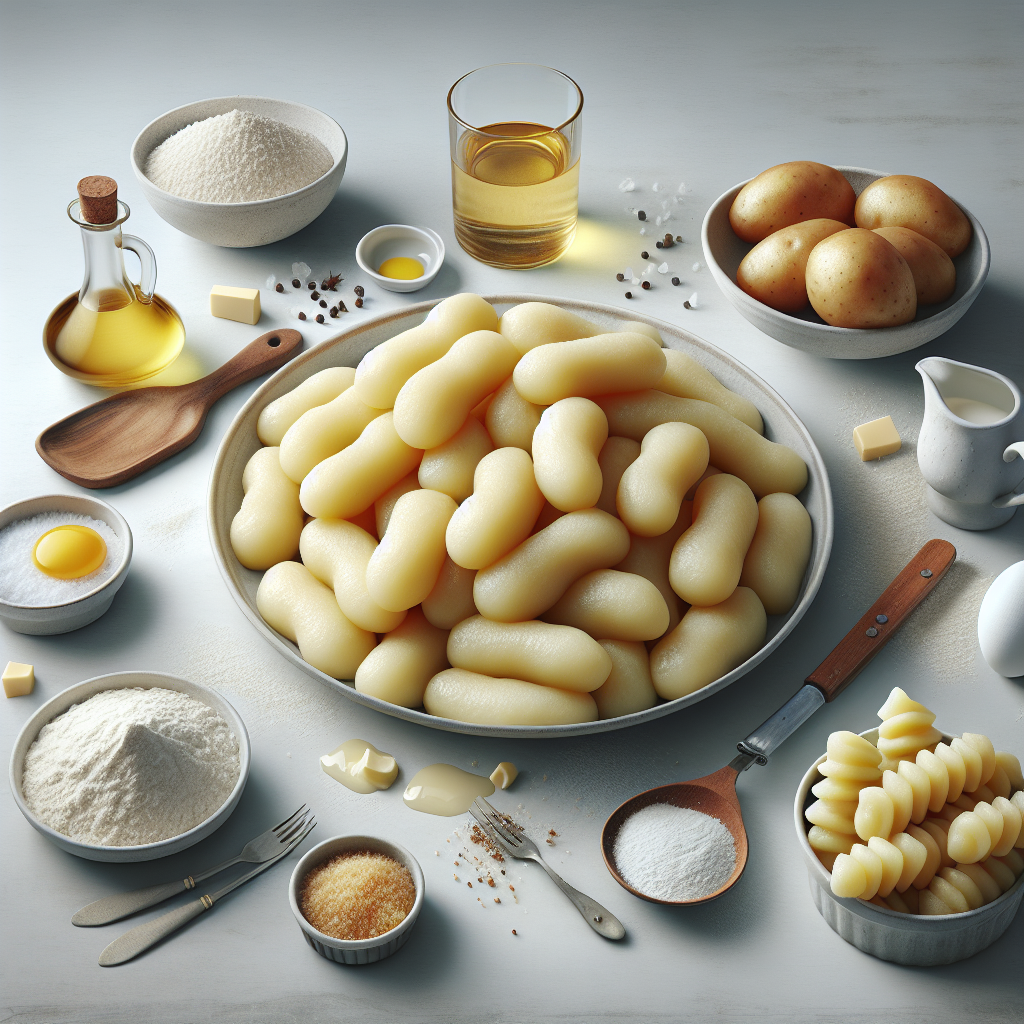 2. In a mixing bowl or dough mixer, combine the cooled mashed potatoes with 200 grams of flour, two eggs, a pinch of nutmeg, and salt and pepper to taste.