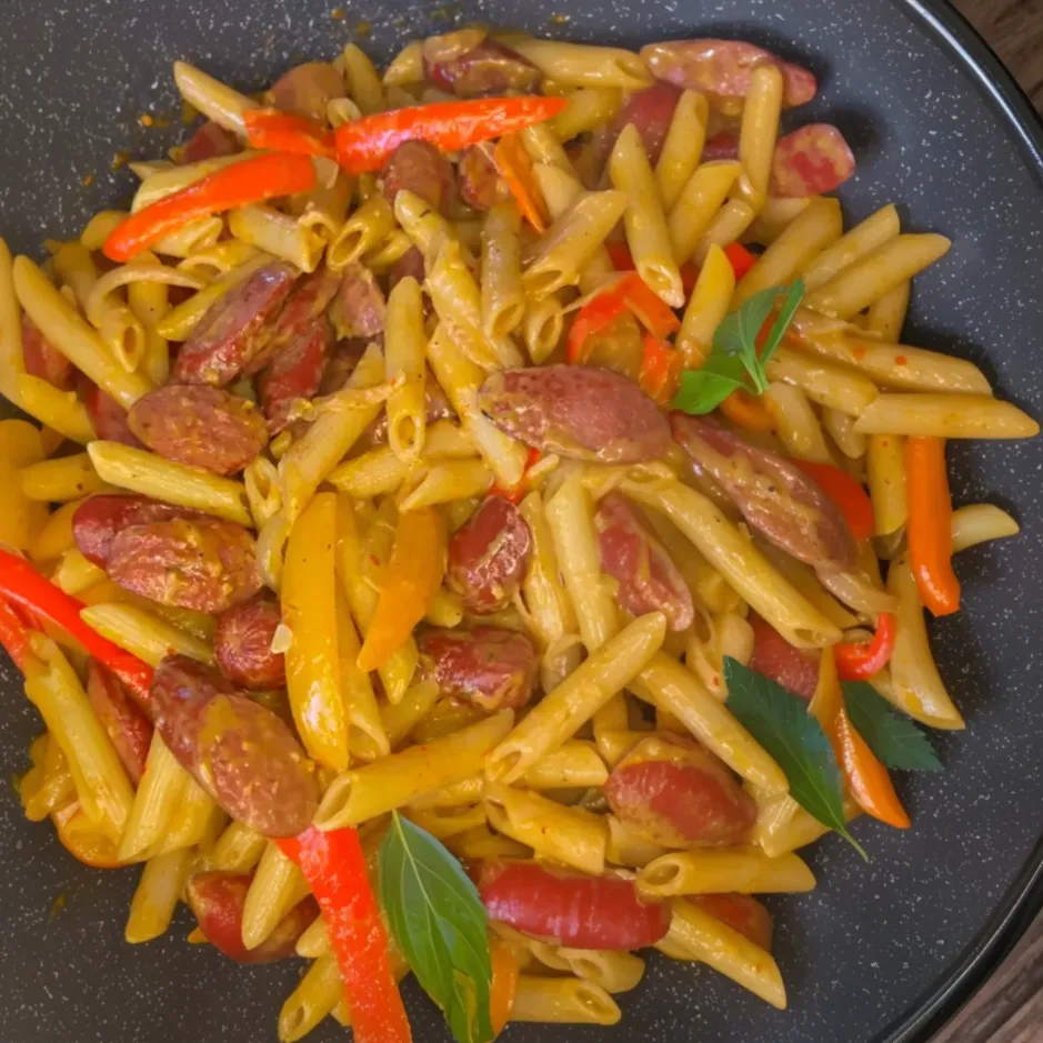 Creamy Cajun Beef Sausage and Pepper Pasta