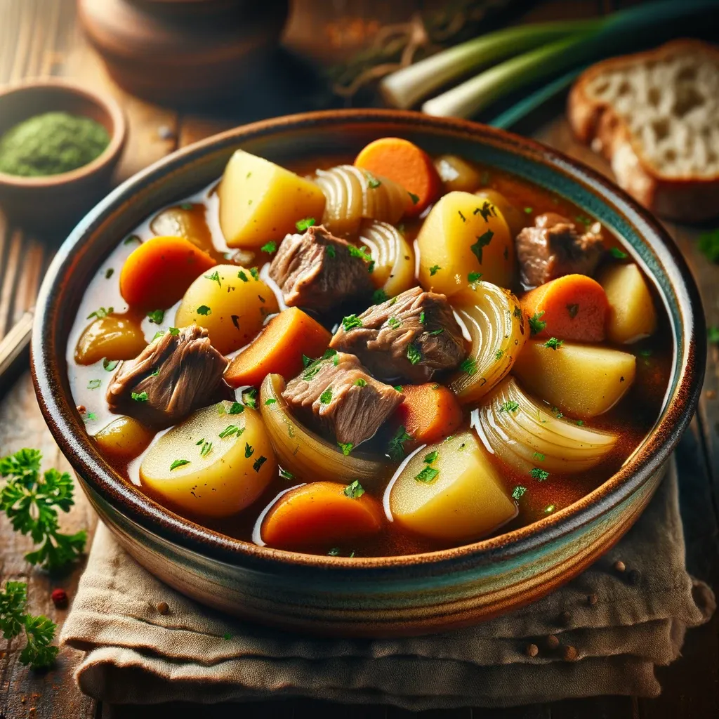 Irish Stew is a traditional and hearty dish that originates from Ireland, celebrated for its simplicity and rich flavors. Traditionally made with lamb or mutton, potatoes, carrots, onions, and leeks, this stew is slow-cooked to perfection, allowing the ingredients to meld together in a flavorful broth. The dish is known for its comforting and rustic qualities, often enjoyed as a warming meal during cold weather. Over time, variations have emerged, but the classic Irish Stew remains a beloved staple, representing the essence of Irish home cooking—wholesome, filling, and full of natural, earthy flavors.
