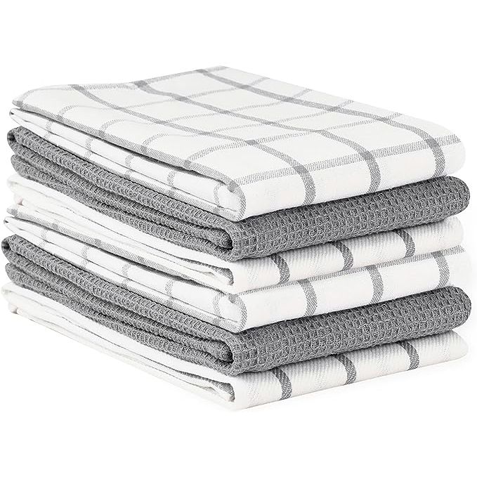 Linen Kitchen Towels and Dishcloths Set - Pack of 6 Cotton Dish Cloths, 18”x 28”, Soft Hand for Kitchen, Tea Towels, Premium Quick Drying Cleaning Grey
