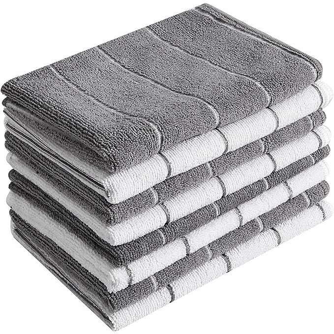 Soft touch Kitchen Towels - High Absorbency, Plush yet Durable Towels, 8 Pack (Grey and White Striped Design), 26 x 18 Inch
