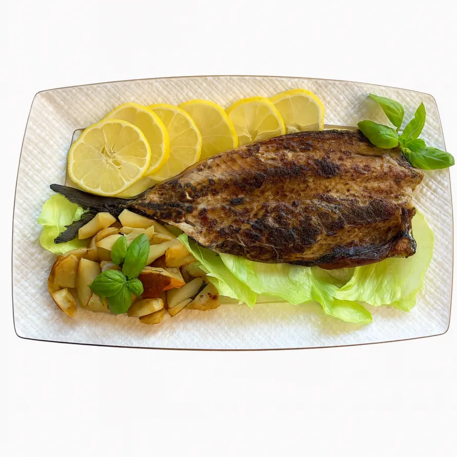 This Mediterranean-inspired recipe is a delightful way to enjoy the flavors of the sea. A whole mackerel is butterflied and seasoned to perfection, then grilled over charcoal for a smoky, tender finish. Accompanied by the freshness of lemon and the crispness of roasted potato wedges, this dish promises a satisfying culinary experience.