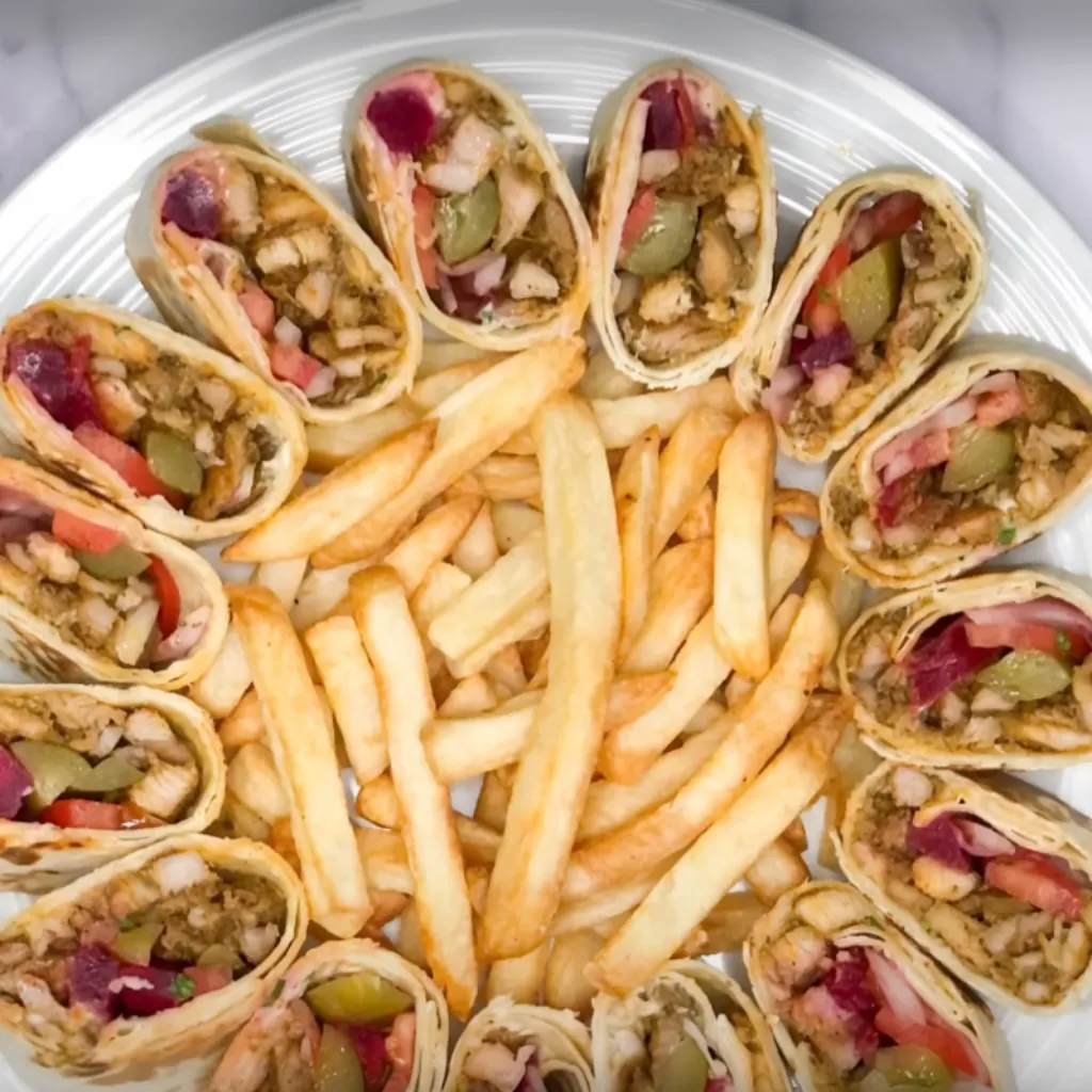 - Add accompanying sides such as fries, pickle turnips, lettuce, onion, tomatoes, and pickles for an authentic presentation.