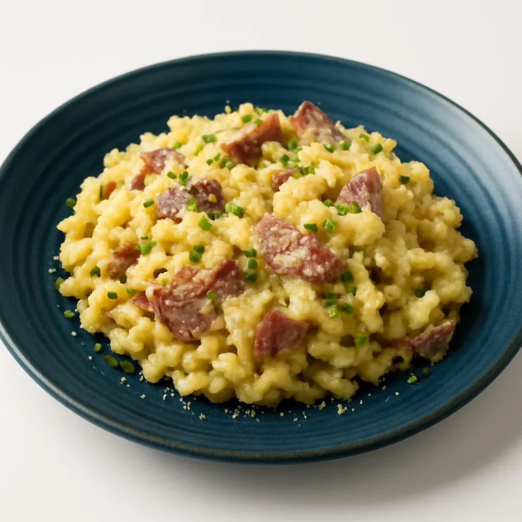 Indulge in the flavors of Germany and Brazil with this traditional Spätzle dish, featuring homemade German-style pasta combined with a savory sauce of Linguiça Blumenau sausage and creamy Parmesan cheese. Perfect as a main course for Oktoberfest celebrations or a cozy dinner at home.