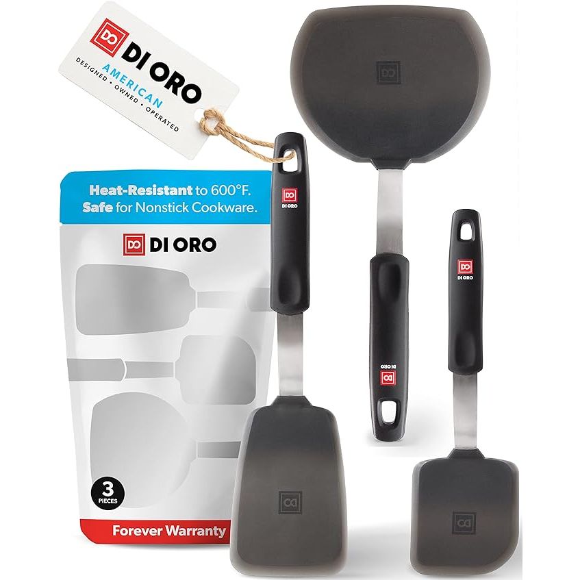 DI ORO Kitchen Spatula Set - Heat-Resistant Silicone Turner Set - BPA Free Pancake Flippers - Safe for Nonstick Cookware (3pc)
