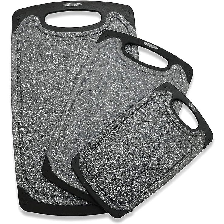 Three Piece Cutting Board Set suitable for Dishwasher, Featuring Juice Grooves and Easy Grip Handle, Non-Slip Surface