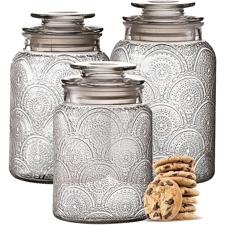 Keep your pantry organized and your food items fresh with the Le'raze Food Storage Containers with Airtight Lids. This set of three retro-designed glass canisters adds a touch of elegance to your kitchen decor while providing practical storage solutions for items such as cookies, tea, sugar, and candy jars. The airtight lids seal in freshness and prevent spoilage, making these containers a must-have for any kitchen.