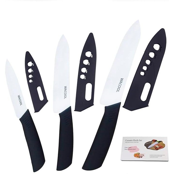 Designed for everyday use, these lightweight and ergonomically crafted knives are perfect for slicing through fruits, vegetables, and meats with ease. The corrosion-resistant ceramic material ensures long-lasting performance, making this set a reliable choice for both professional chefs and home cooks. Add the WACOOL Ceramic Knife Set to your kitchen collection for versatile functionality and superior cutting performance that will last for years to come. Description by ChatGPT.