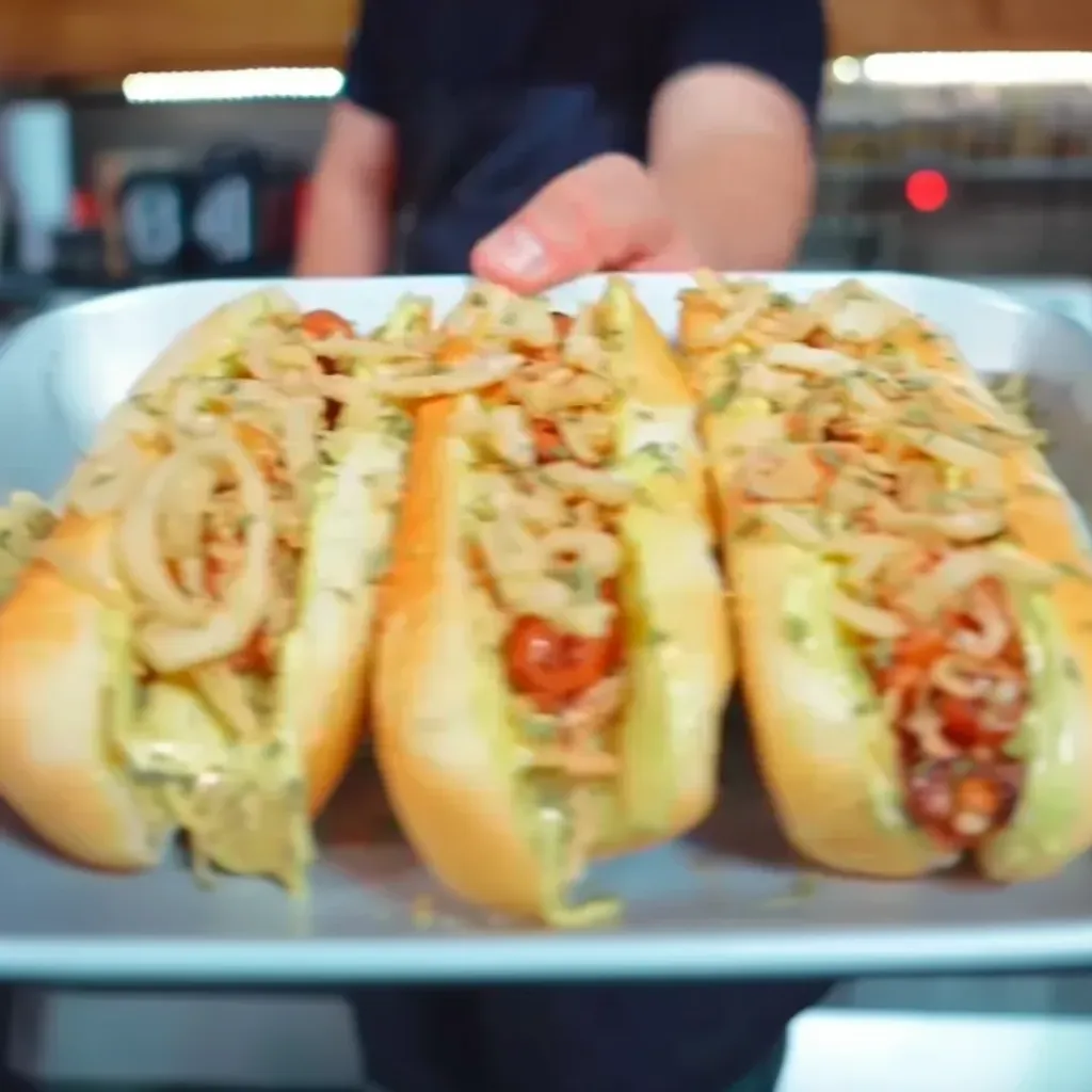 - Assemble your gourmet hot dogs by placing a smoked sausage on each toasted brioche roll, then generously slather with the bacon-mayo relish mixture.