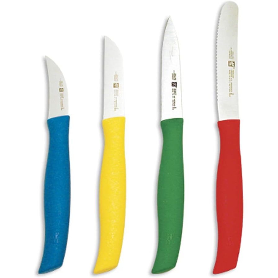 The Zwilling J.A. Henckels Twin Grip Colored Paring Knives, Set of 4, (model number 38194) are a must-have for any kitchen. Crafted with high-quality stainless steel blades, these knives are sharp and durable, perfect for intricate cutting tasks like peeling and slicing. The colorful non-slip handles not only provide a comfortable grip but also add a fun pop of color to your kitchen.
