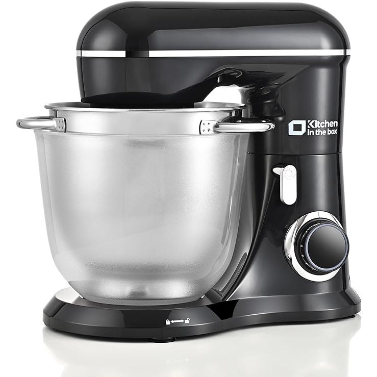 Equipped with 10 speed options, this mixer is ideal for a variety of tasks from kneading bread dough to whipping cake cream. The tilt-head design allows for easy access to install or remove bowls and accessories, including an upgraded aluminium dough hook, flat beater, and stainless steel whisk that are all dishwasher-safe for effortless cleanup.