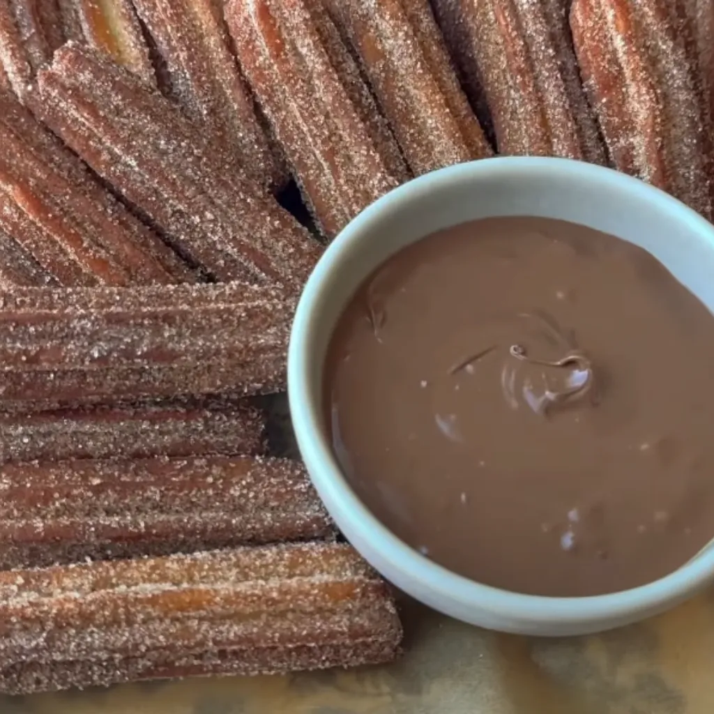 - Plate your churros and serve with Nutella, chocolate sauce, or dulce de leche for dipping enjoyment.