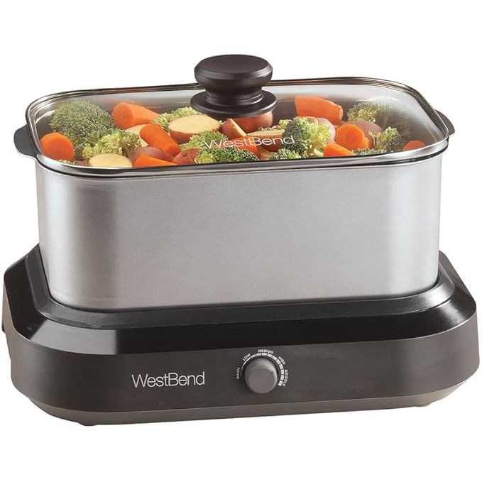Not just a kitchen essential, the West Bend Slow Cooker is a statement piece with its brushed stainless steel exterior that will enhance the look of your countertop. With 240 Watts of power, this slow cooker is a reliable choice for creating delicious, budget-friendly meals. The included instruction booklet offers recipes for stews, soups, and meat dishes, simplifying meal prep and ensuring your culinary creations will impress every time. Get ready to elevate your cooking experience with the West Bend Slow Cooker. Description by ChatGPT.