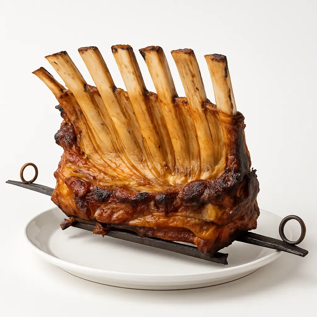 - Secure the beef ribs on a large metal stake with wires, ensuring it's flat and stable.